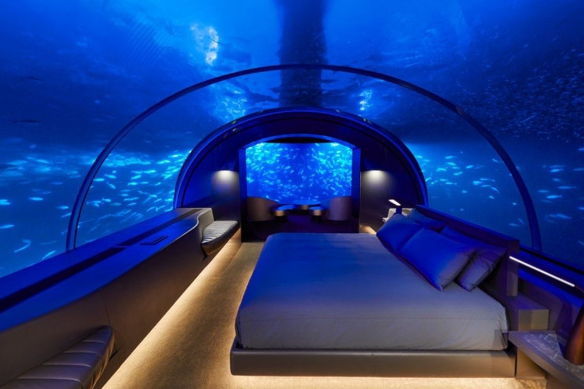 You might have heard about swimming around the sharks but what if you could live or sleep with them? The Conrad Maldives Rangali Island has given the world its first underwater villa, Muraka. Massive curved acrylic dome windows offer guests 180-degree views of the vibrant coral life surrounding them in the Indian Ocean, giving a whole new meaning to the term “sleep with the fishes”. The Muraka, an underwater residence is a two-story villa where the living room, bathroom, and bedroom are all located below sea level.
