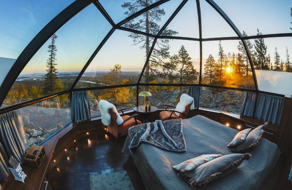 Levin Iglut in the hills of Lapland serves undoubtedly the best views one could ever get. While experiencing all these once-in-a-lifetime activities, you can plan your stay over here. They comprise of 24 glass igloos with the comfort of cost beds you can eat the northern lights. Drowned in pillows and blankets each igloo offers much more than a regular hotel. One can visit this place in mid-November to mid-April where one can ski at Levi resort before moving towards the light. Imagine waking up to the sky flowing like a liquid plasma screen- most of us tech-addicts might wonder, “How did my screensaver get that big?”