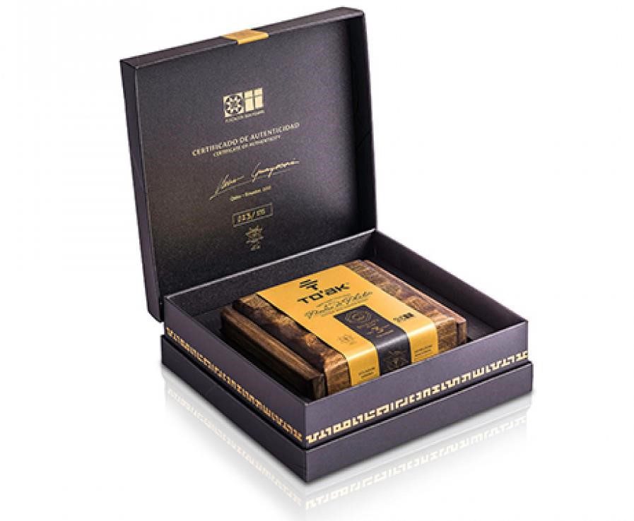 To’ak is a luxury chocolate making company based out of Ecuador. The Art series is inspired by the legendary Ecuadorian artist, Oswaldo Guayasamin and is also the company’s inaugural blend. It’s a one-of-a-kind experience in the mouth- an explosion of striking flavours that gives a heady sensation of that familiar chocolate high. To accentuate the headiness, this is well paired with sweet fortified wines like Port and Pedro Ximenez sherry; in the realm of cheeses, Gruyere,Comté, aged Gouda, and Brie are recommended by To’ak.