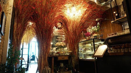 The café is just a flawless mixture of stunning vintage collections and vibrant flowers. The ambiance of the café is simply breathtaking, from the alluring crystal chandeliers on the ceiling to the small bouquets on every inch is exactly how it feels to have a delightful cup of coffee and some flavorsome desserts between the beauties of nature.